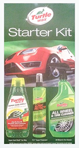 Turtle Wax Auto Detailing Starter Kit Includes Super Hard Shell Liquid Wax (16 oz.) F21 Super Protectant (10.4 oz.) and All Wheel and Tire Cleaner (23 oz.) Non-greasy, Dry-touch Shine