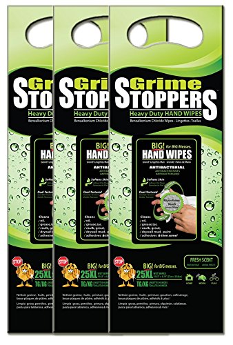 Why Use Grime Stoppers® Heavy Duty Hand Wipes 00225 - 3 Packs, 25 Wipes/Pack, Softpack with Plastic Lid Closure ?