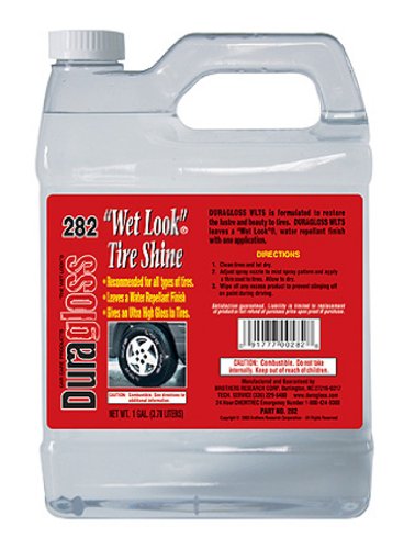 Design rich colors to choose fromExterior Car Care - Oh, the joys of wax! Back in the days where washing and waxing were about all there was to the everyday car owner . Find excellent deals on a variety of diagnostics tools and testing equipment . This pallet flag provides a twist on the usual flag design by replacing the blue field of stars with a cutout map of the United States with a string art star! Perfect for the 4th of July, this pallet flag will bring flea market style to your patriotic celebration!.Duragloss 282 Wet Look Tire Shine - 1 Gallon will help your job easier dexDuragloss wet look tire shine is a solvent based formulation designed to restore the luster and beauty to tires. It gives an ultra-high gloss to tires. Duragloss wet look tire shine leaves a wet look, water repellant finish with one application. Duragloss wet look tire shine is a solvent-based dressing, which gives it superior resistance to moisture and a dramatic high gloss finish. Your tires will have a deep black luster and a wet-look that is distinctly Duragloss. The finish will withstand rain and exposure to moisture to maintain a sharp, well-dressed look. Duragloss wet look tire shine makes rubber look blacker and brightens the appearance of white lettering to make tires stand out. The high gloss finish is a gorgeous complement to a Duragloss shine on the paint. Apply Duragloss wet look tire shine to clean, dry tires. We recommend spraying the dressing onto a cobra tire dressing applicator, sold separately, to avoid overspray. Then spread a thin, even coat over each tire. Apply multiple coats if desired. For a dramatic, wet-look shine on all types of tires.
